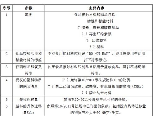 1、第1935/2004号法规“准备与食品直接接触的材料和物品”