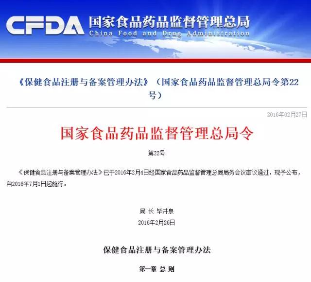 第七十五条 本办法自2016年7月1日起施行。2005年4月30日公布的《保健食品注册管理办法(试行)》(原国家食品药品监督管理局令第19号)同时废止。
